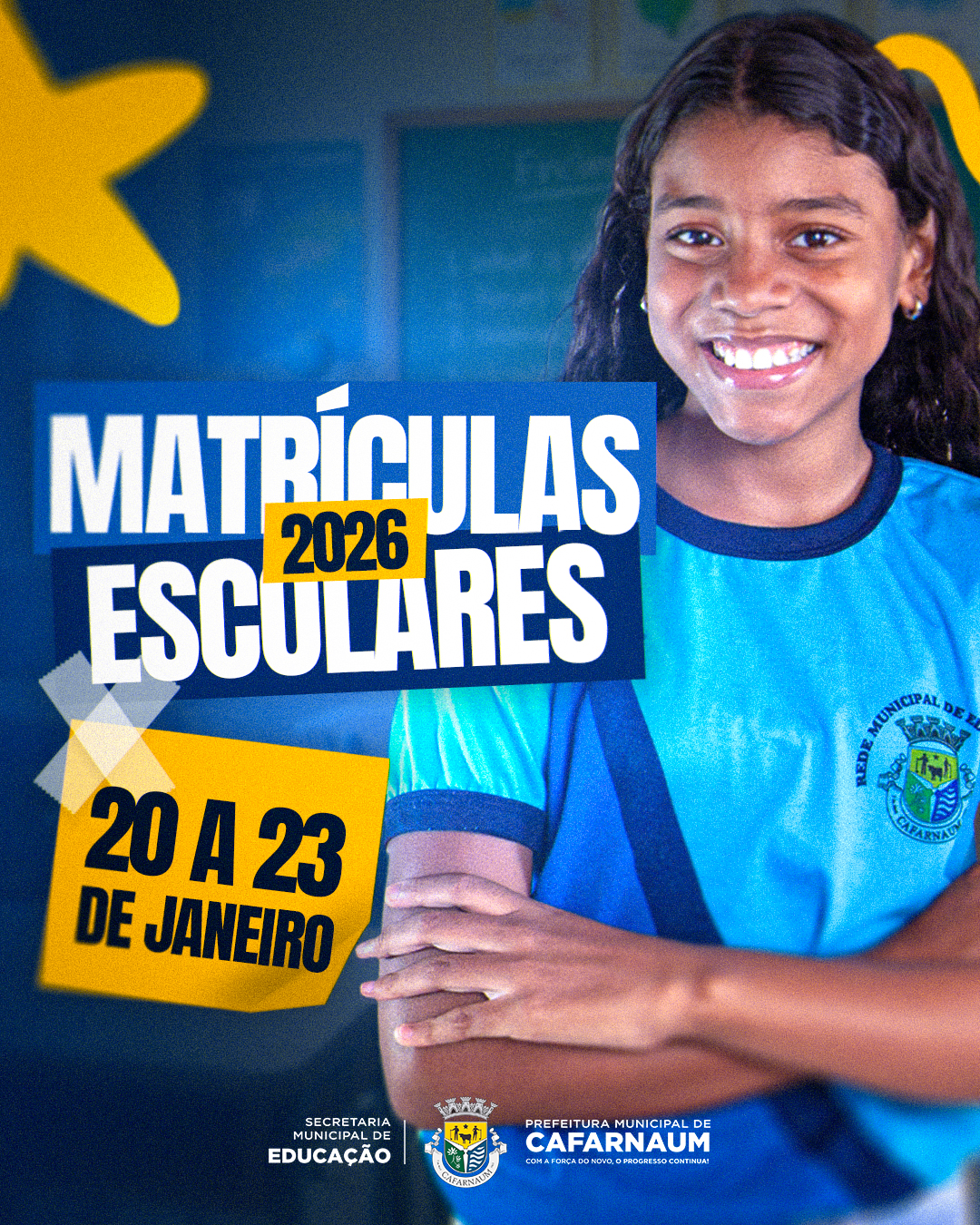 Destaque MATRÍCULAS ESCOLARES DO ANO 2026 - REDE MUNICIPAL. 20 A 23 DE JANEIRO 2026 19/01/2026 Anexos matriculas_01.jpg1768827082.jpg matriculas_02.jpg1768827082.jpg Mais Notícias